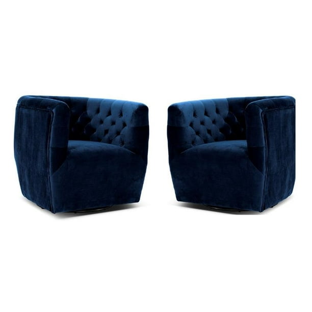 Home Square 2 Piece Swivel Velvet Accent Chair Set In Navy Blue Walmart Com